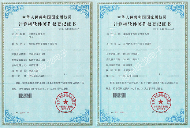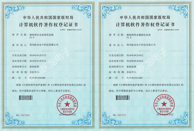 分别是:经销商分佣系统V1.0、滤芯预警与租赁模式系统V1.0、物联网多设备管理系统V1.0、物联网净水器推送系统V1.0、物联网设备通讯服务功能系统V1.0、物联网设备消息队列系统V1.0。