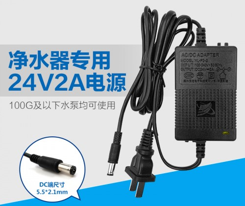 jrs直播针对物联网净水器设计研发的专用电源YL-P5-A(24V5A)、YL-P3-A(24V3A)、YL-P2-B(24V2A)分别适用于400G及以下水泵、300G及以下水泵、100G及以下水泵,输出电压精度可达98%,电压调整率<1%,负载调整率<2%,确保输出电流的稳定性和高效率。